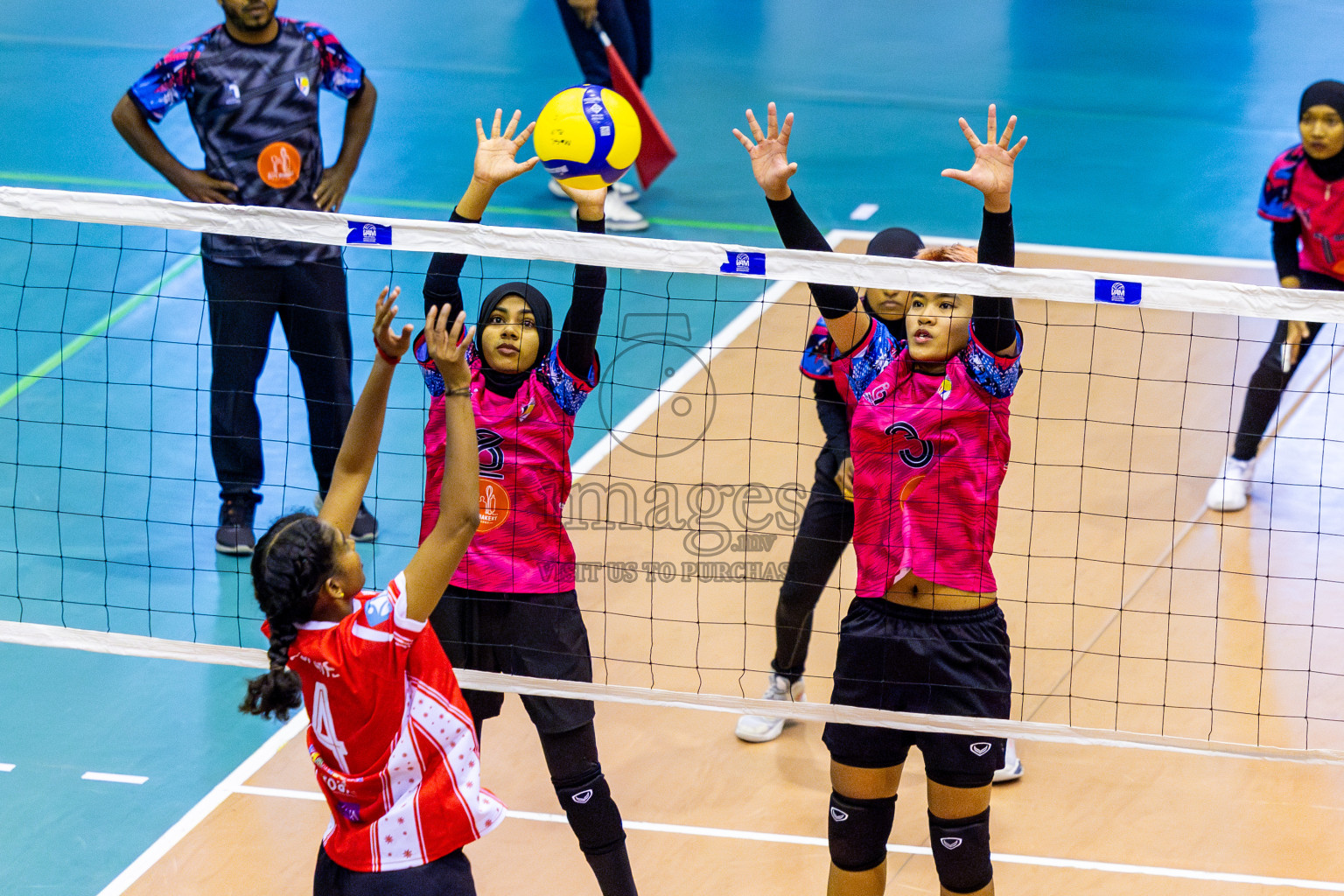 Good Games Sports Academy vs Volleyball Youth New Generation in Day 5 of Women's Division of VAM Cup 2025 held in Male', Maldives on Sunday, 13th April 2025 at Social Center Indoor Hall Photos By: Nausham Waheed / images.mv