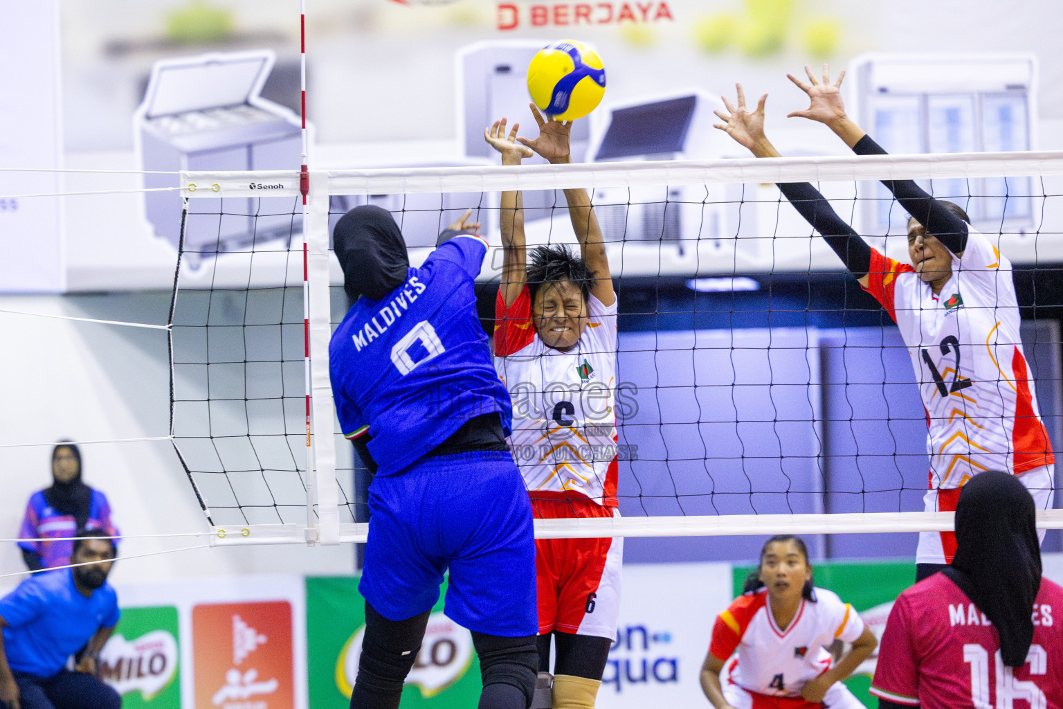 Maldives vs Bangladesh in the semi finals of CAVA Cup Woman's Volleyball 2025 held in Male', Maldives on Wednesday, 24th December 2025 at Social Center Indoor Hall Photos By: Ismail Thoriq / images.mv