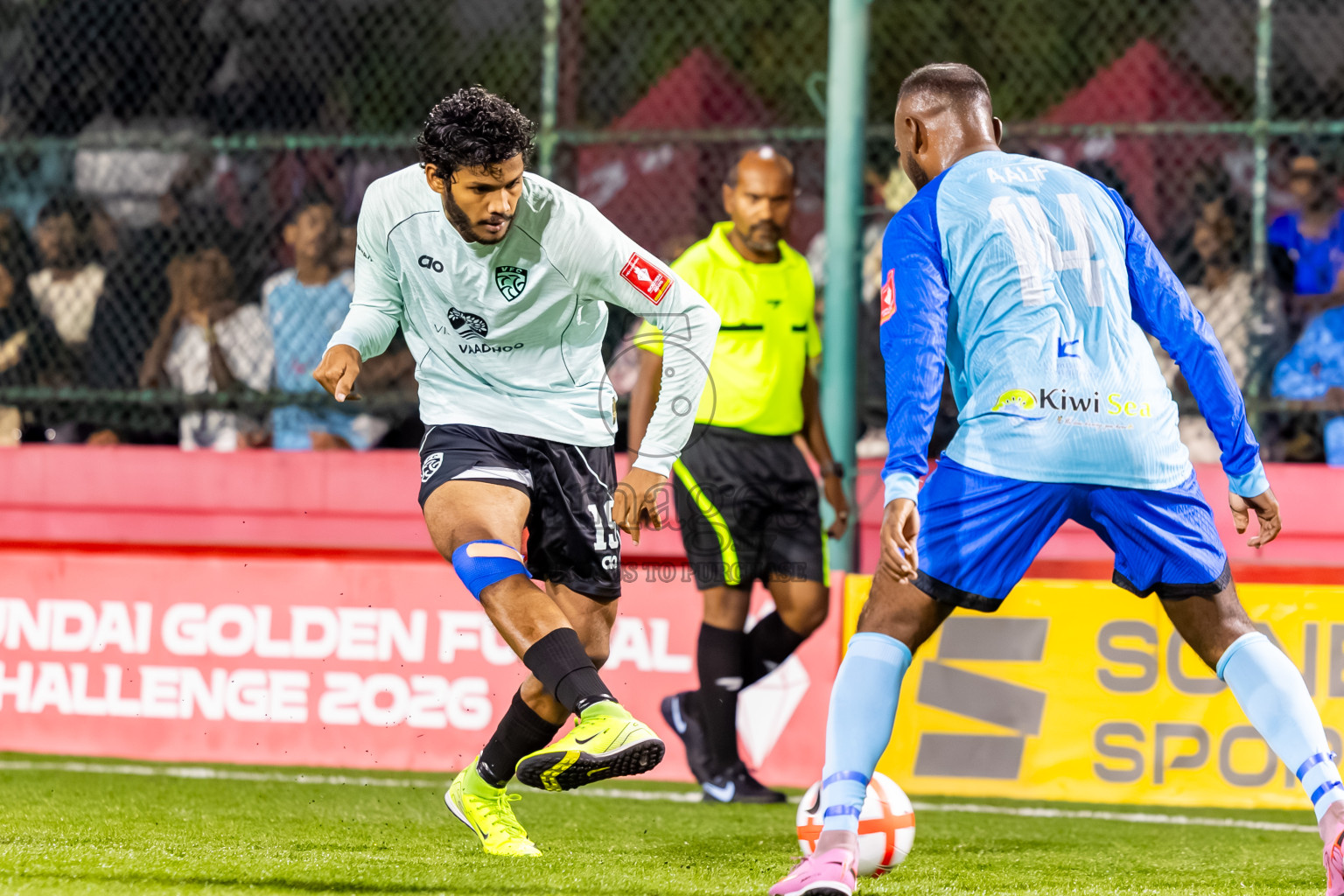 GDH Vaadhoo vs GDH Fiyoree in day 11 of Golden Futsal Challenge 2026 was held on Wednesday, 14th January 2026, in Hulhumale', Maldives Photos: Nausham Waheed / images.mv