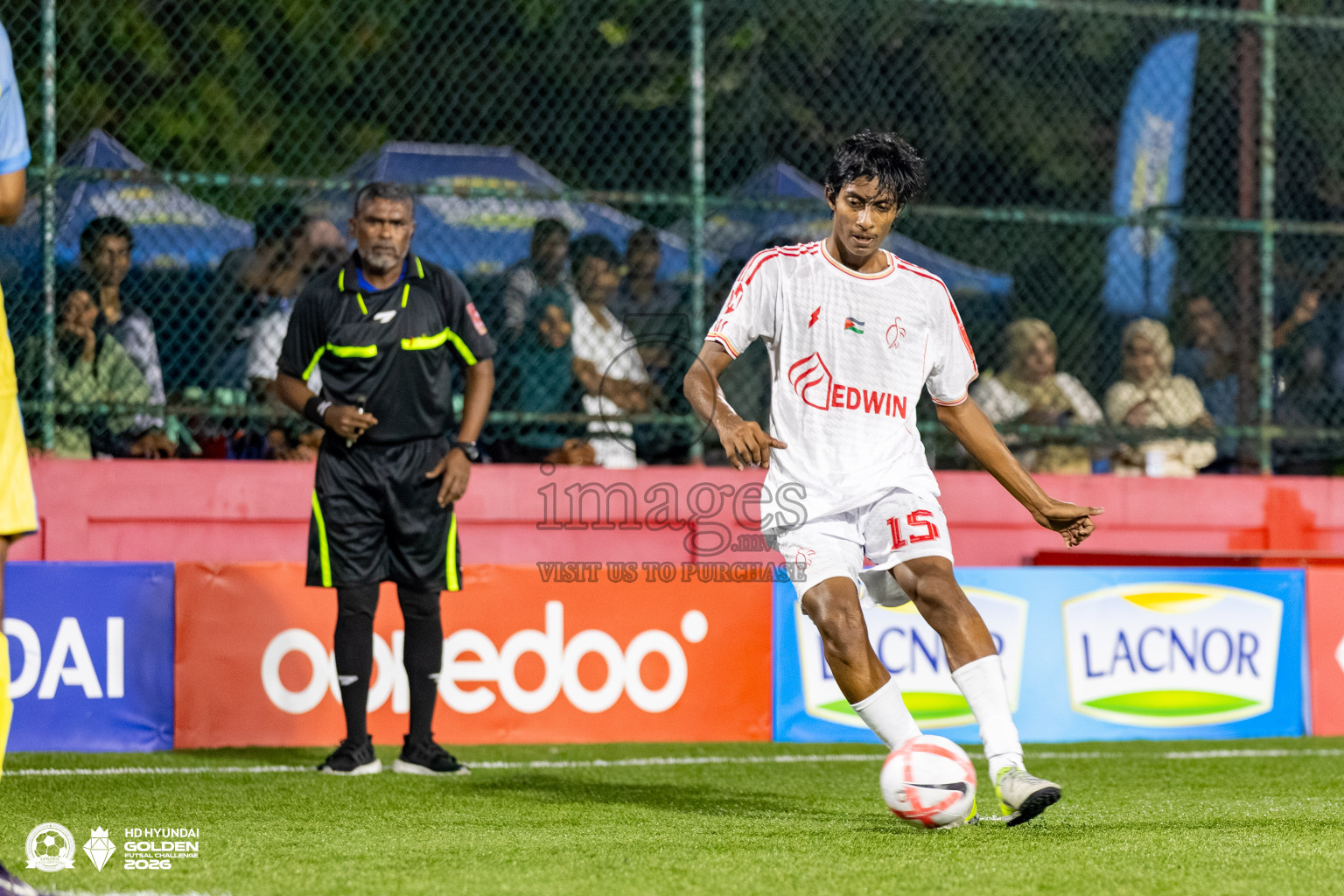F. Dharanboodhoo VS F. Feeali in Day 13 of Golden Futsal Challenge 2026 was held on Friday, 16th January 2026, in Hulhumale', Maldives Photos: Hassan Simah / images.mv