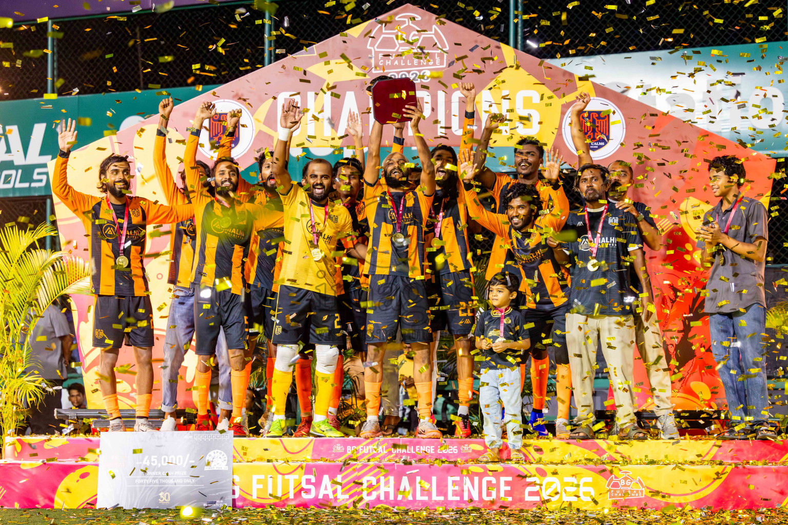 JJ Sports Club vs FC Calms in the final of BG Futsal Challenge 2026 was held in BG Futsal Ground on Thursday, 12th March 2026, in Male', Maldives Photos: Nausham Waheed / images.mv