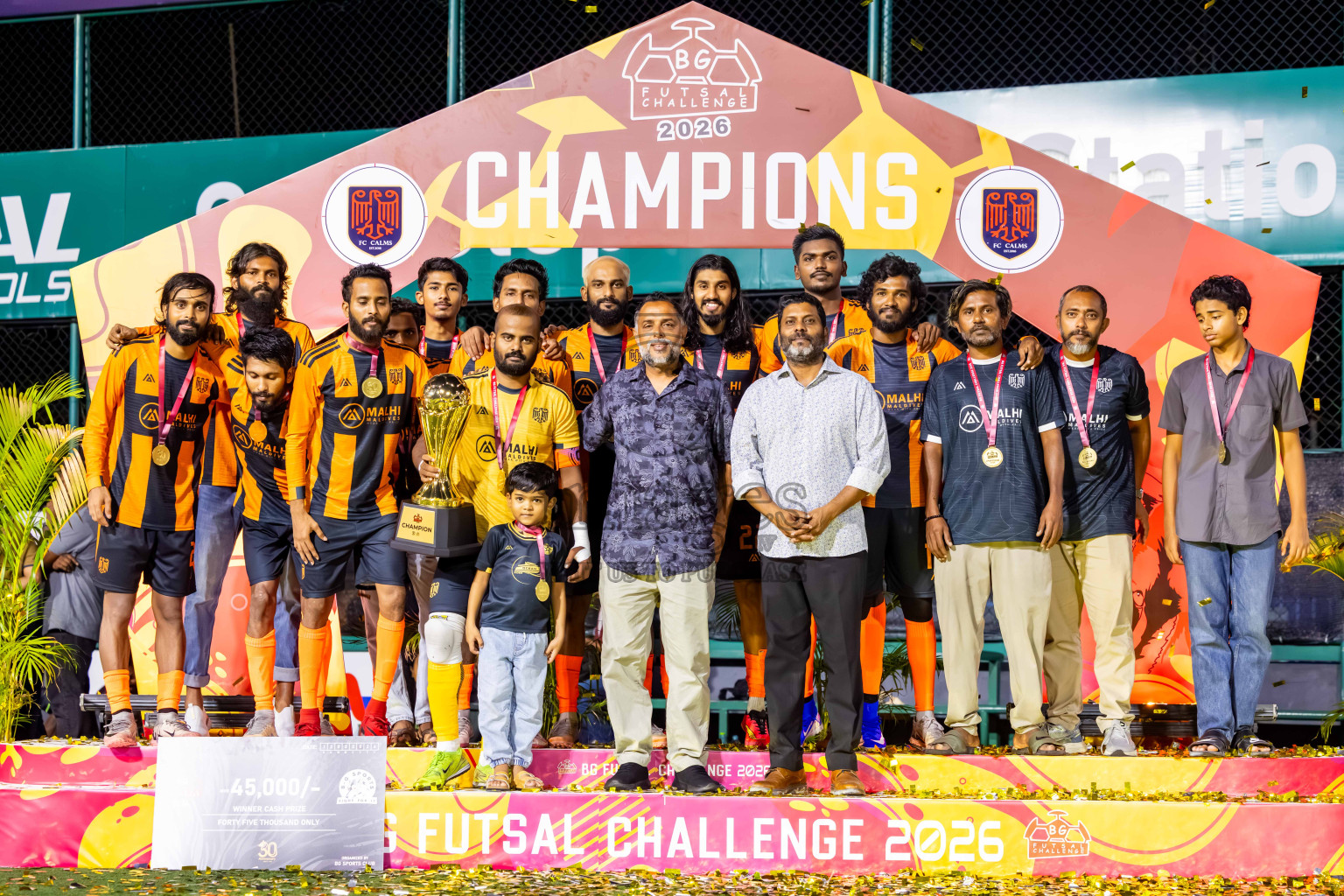 JJ Sports Club vs FC Calms in the final of BG Futsal Challenge 2026 was held in BG Futsal Ground on Thursday, 12th March 2026, in Male', Maldives Photos: Nausham Waheed  / images.mv