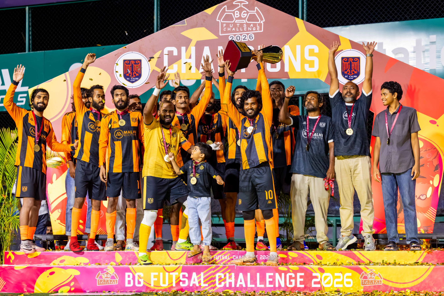 JJ Sports Club vs FC Calms in the final of BG Futsal Challenge 2026 was held in BG Futsal Ground on Thursday, 12th March 2026, in Male', Maldives Photos: Nausham Waheed  / images.mv