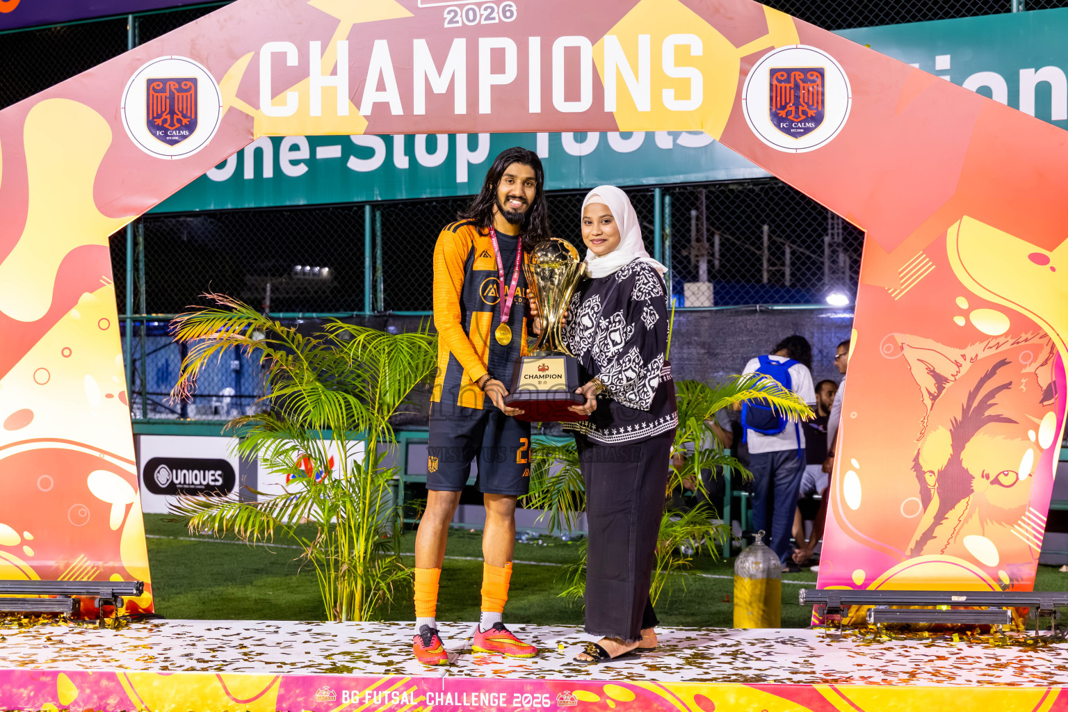 JJ Sports Club vs FC Calms in the final of BG Futsal Challenge 2026 was held in BG Futsal Ground on Thursday, 12th March 2026, in Male', Maldives Photos: Nausham Waheed / images.mv
