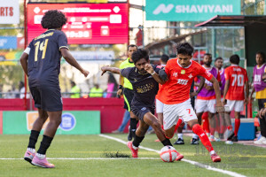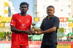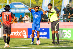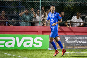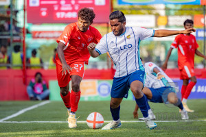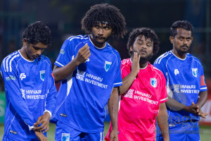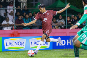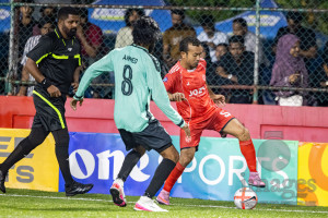 L. Maavah VS L. Mundoo in Day 6 of Golden Futsal Challenge 2026 was held on Friday, 9th January 2026, in Hulhumale', Maldives Photos: Hassan Simah / images.mv