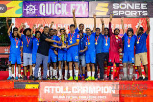 Lh Naifaru vs Lh Kurendhoo in Lhaviyani Atoll Finals Day 26 of Golden Futsal Challenge 2025 was held on Thursday , 30th January 2025, in Hulhumale', Maldives. Photos: Nausham Waheed / images.mv