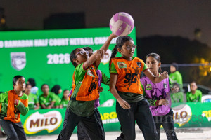 Day 1 of MILO Ramadan Halfcourt Netball Challenge 2026 was held in Cental Park, Hulhumale', Maldives on Monday, 23rd February 2026. Photos: Mohamed Mahfooz Moosa / images.mv