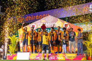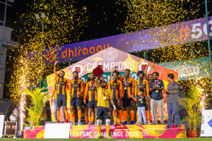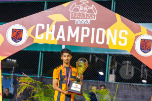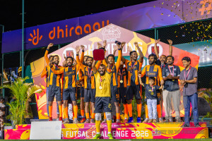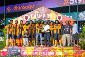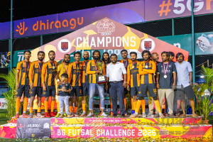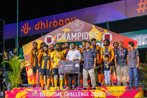 JJ Sports Club vs FC Calms in the final of BG Futsal Challenge 2026 was held in BG Futsal Ground on Thursday, 12th March 2026, in Male', Maldives Photos: Nausham Waheed / images.mv