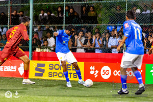 GA Dhaandhoo VS GA Villingili in Day 19 of Golden Futsal Challenge 2025 was held on Thursday, 23rd January 2025, in Hulhumale', Maldives. Photos: Hassan Simah / images.mv