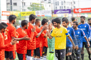 M. Veyvah vs M. Maduvvari in Day 12 of Golden Futsal Challenge 2025 was held on Thursday, 16th January 2025, in Hulhumale', Maldives Photos: Mohamed Mahfooz Moosa / images.mv