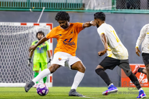 SC Valorous vs The One X in day 7 of BG Futsal Challenge 2026 was held in BG Futsal Ground on Wednesday, 25th Feburuary 2026, in Male', Maldives Photos: Areef Adam / images.mv
